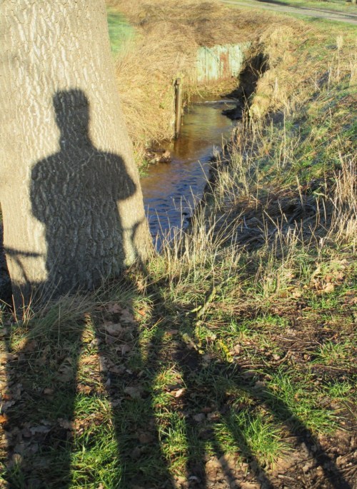 Abzweigung Obstparadies / Blick Elbdeich Fährmannssand – das Dunkle im Gegenlicht auf der Straße sieht nicht nur verdächtig aus.