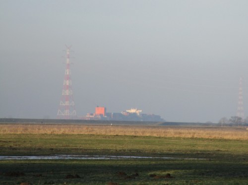 Jetzt erkenne ich, warum die andere Person auf dem Deich (mit starkem Foto-Objektiv) gespannt in südöstliche Richtung blickt – die Norfolk Express.