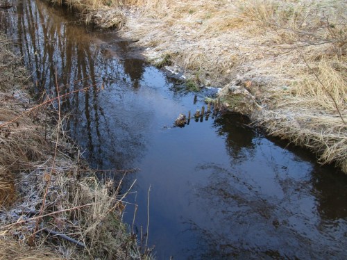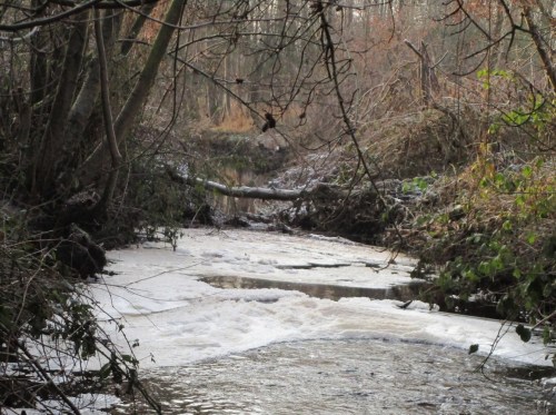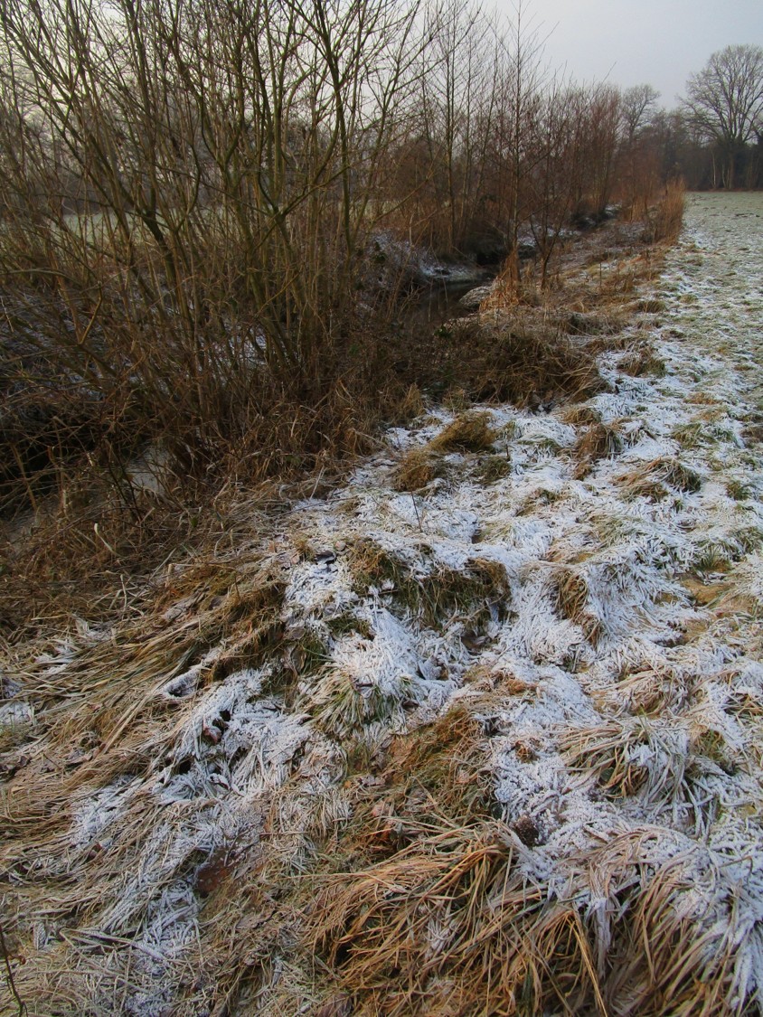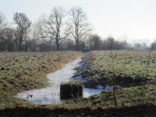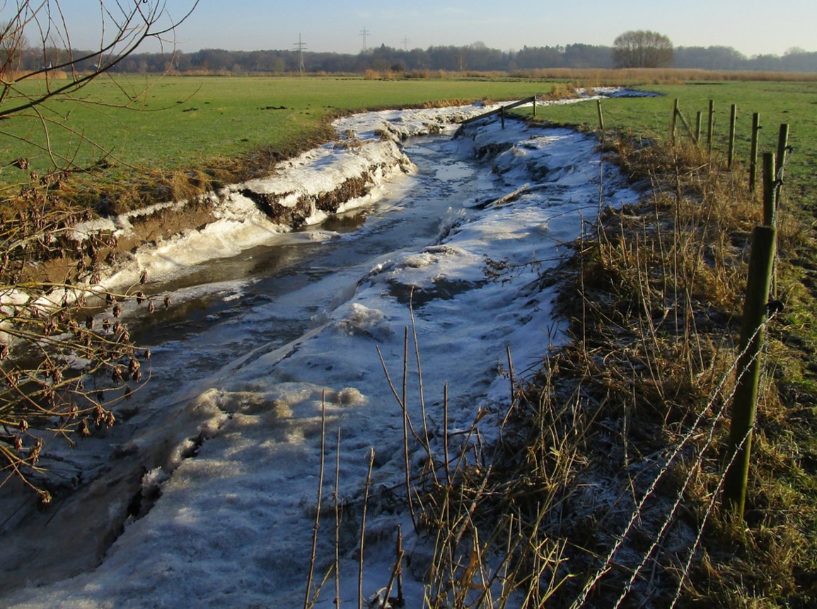Es hat geklappt, ich bin „unten“. – In der Wedeler Marsch – Straße frei, die Gräben überstaut, die Wiesen überschwemmt.