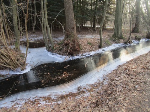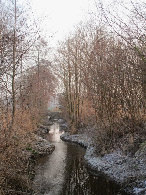 Blick Ost – Kleinklima der (verbotene) Rodelhang auf der Nordseite, Nachmittagssonne von Süd(west)en.