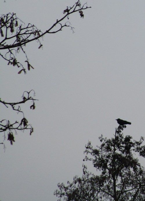 Detailblick – Nebelkrähen und eine große Zahl Lachmöwen inspizieren den „neuen“ Lebensraum.