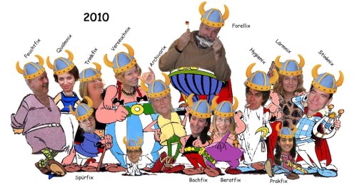 Alle sind begeistert, dass nicht nur alteingesessene Bevölkerung des Gallierdorfs (Eigenschöpfung, Stand 2010, 60 Jahre ist damals der Chef auf dieser, unserer Erde), sondern auch Nachfolgende die Feierrunde komplettieren.
