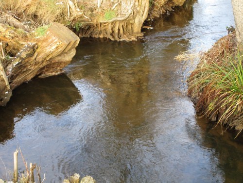 Brückenblick bachab, mittlerer Abfluss – das Idyll trügt.