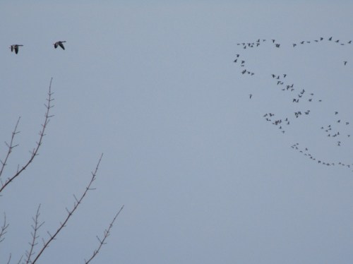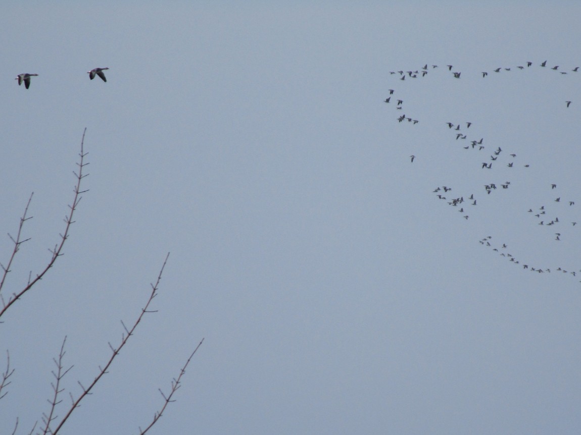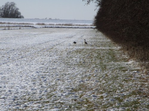 Mehr als diese werde ich auf der ganzen Tour nicht sehen. Sie sind Rückkehrer aus einer hoffentlich nicht so beschneiten und gefrorenen Landschaft, wo sie Nahrung fanden.
