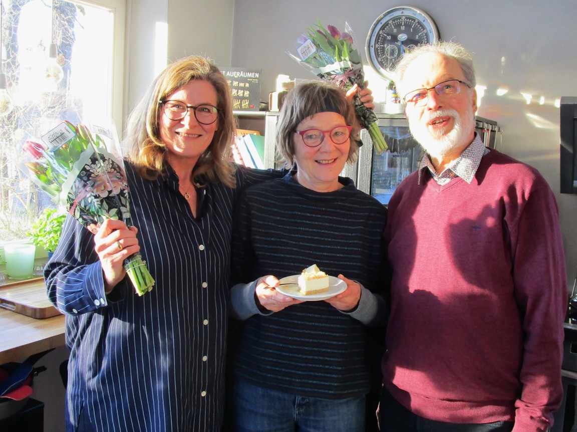 Die beiden „Neuen“ (für Verrentung bzw. Pensionierung) werden von aktiven Kolleginnen und Kollegen inständig gebeten zu bleiben.