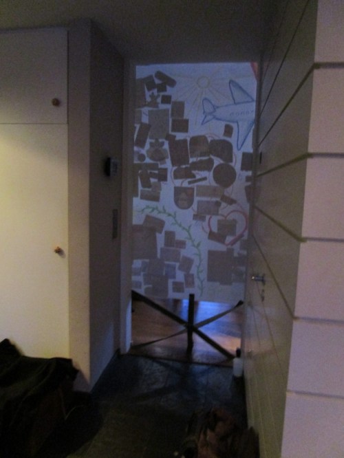 Wie sich im weiteren Verlauf herausstellt, wird die „Wand“ aus Papier unten befestigt. Hier, auf der Rückseite sammeln sich die „Ruhedständler“.