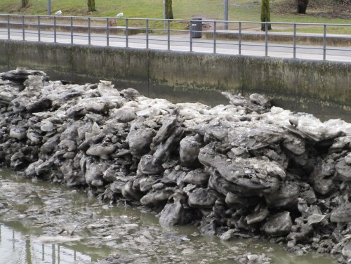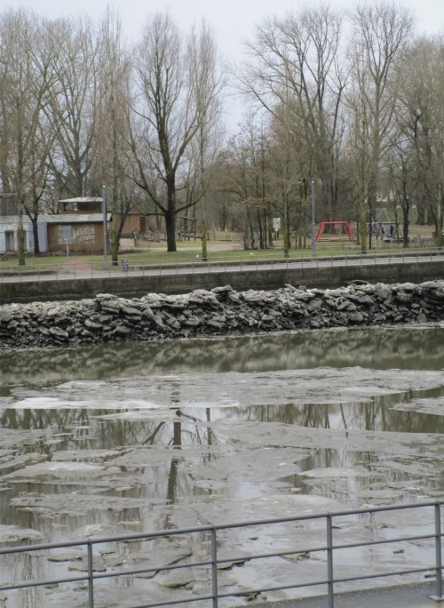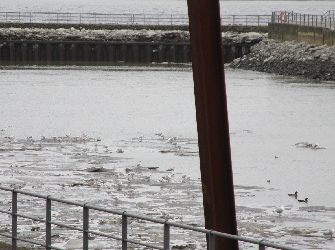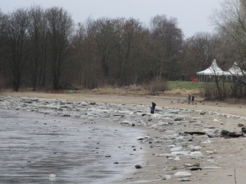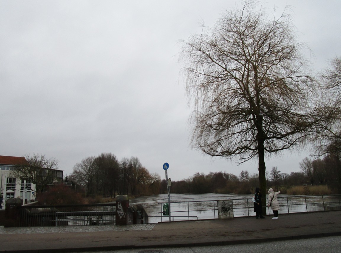 Ich sehe mal was anderes von Hamburg! Die Aussenalster, weiss – mit einer Fahrspur drin.