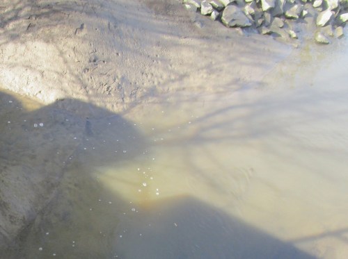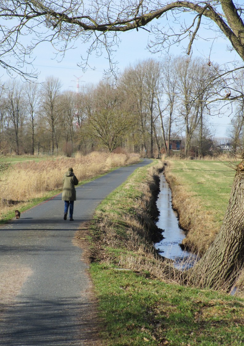 So radele ich mit meiner Erklärung des Geschehens weiter, wie kürzlich gezeigt, am randvollen Pferdetümpel vorbei, bereits zurück in Wedel. – Da aaa …