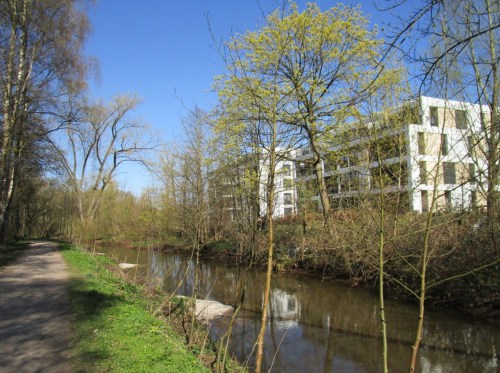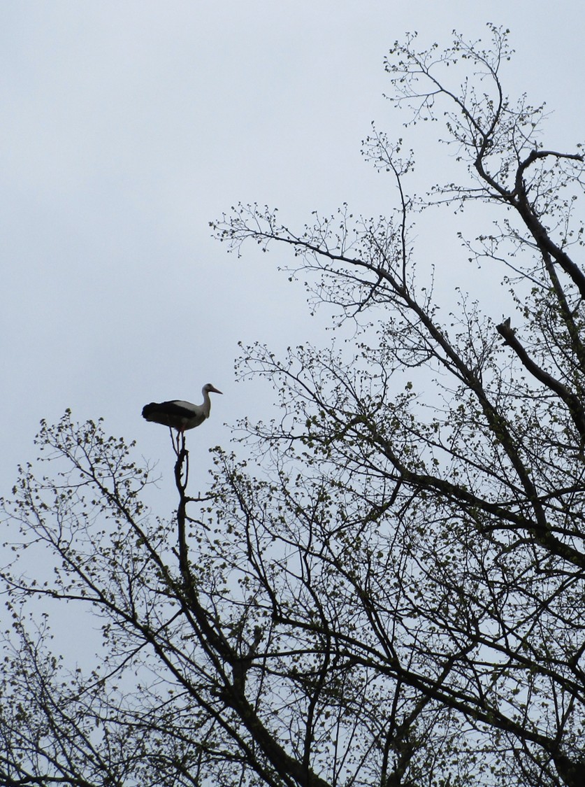 Als ich durch die AltEichenAllee Idenburg radele, fällt mir durch die noch kahlen Eichenkronen ein kreisender Storch auf. Der kreist und kreist, macht Anstalten, auf einem der beiden Horste auf dem Hauptdachfirst zu landen …, sieht leicht erschrocken aus … und flattert auf, zur nächsten Runde.