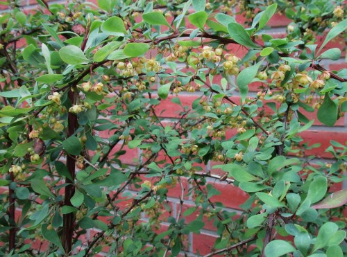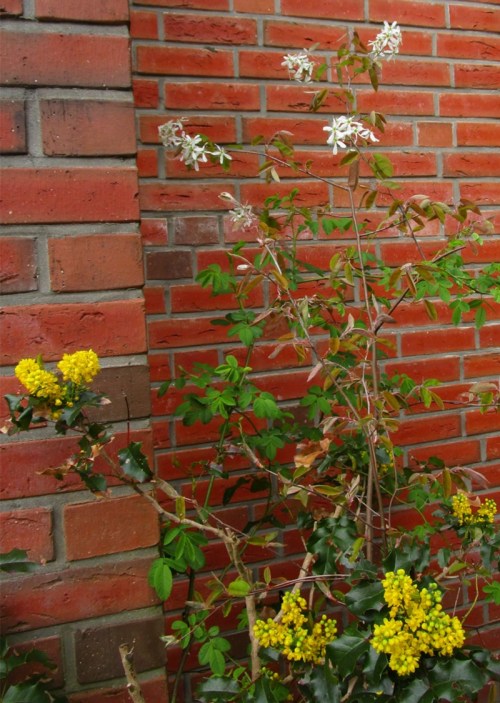 Wir warten ab, ob die stören wird. Genau wie bei den Mahonien, die freiweg blühen dürfen, in größerem Wuchs oder Behindern des Eingangs danach aber zurechtgeschnitten werden. Verbleibende, sich entwickelnde Früchte sind für Vögel weiter reichlich vorhanden.
