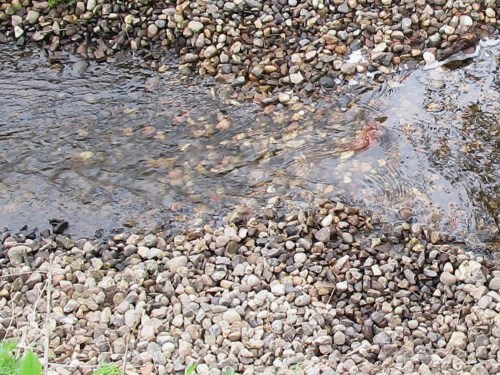 Was ich für mögliches, erstes Besuchen unserer Bastelein durch Flussneunaugen für möglich hielt, stellt sich bei näherem Hinsehen doch als Menschenwerk heraus. – Auch schön.