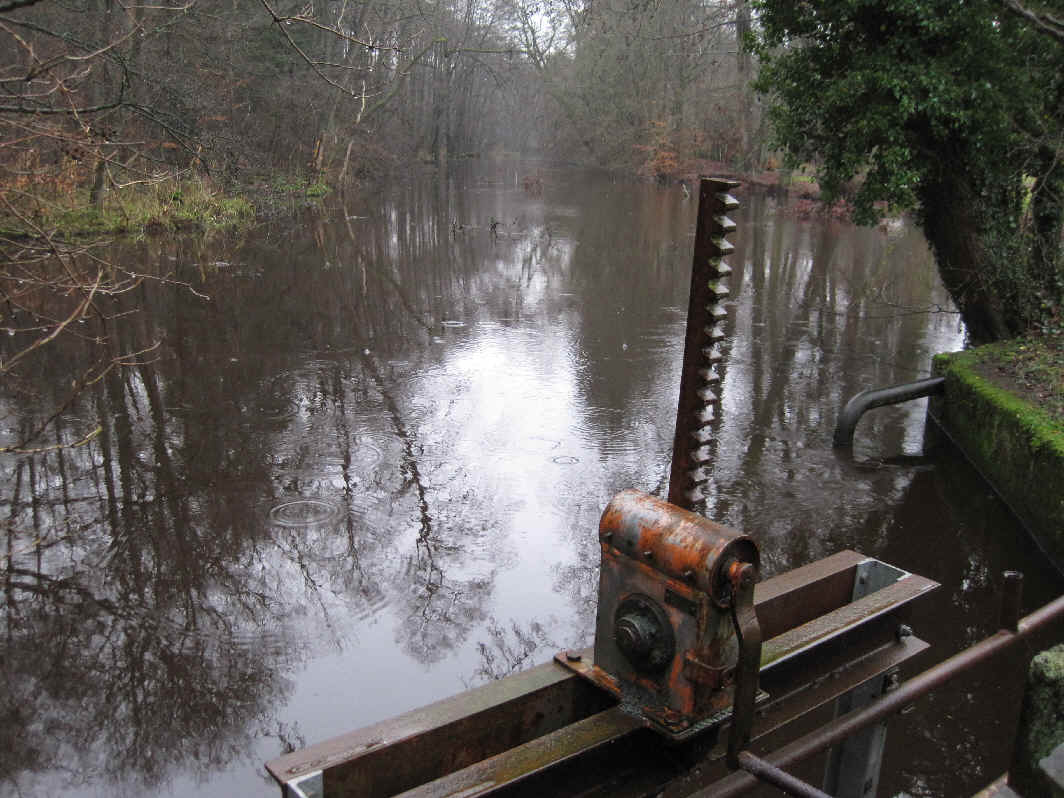 Nicht einfacher wird die Situation dadurch, dass das Hauptwehr nur schwer regelbar ist – so wird das Wasser primär über den leicht regulierbaren Teichablauf am Umlaufgraben abgeführt.