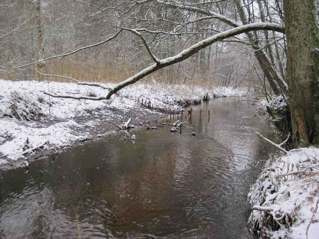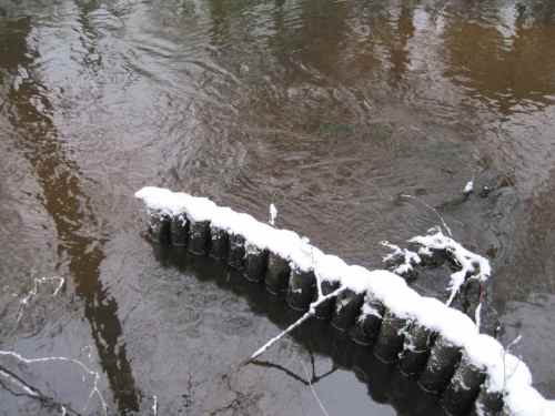 Winterliche Spaziergänge sind gut – gekoppelt mit Bachbelebung noch besser. So haben wir wieder ein paar Hölzchen aus dem Garten, i.W. Haselnuss und Weiden, verarbeitet. Fehlende Rauigkeit in Gewässersohle und Uferbereich führt angesichts der Hochwasserstöße aus Gemeinden und Städten dazu, dass sogar die Gleithänge „abrasiert“ werden.