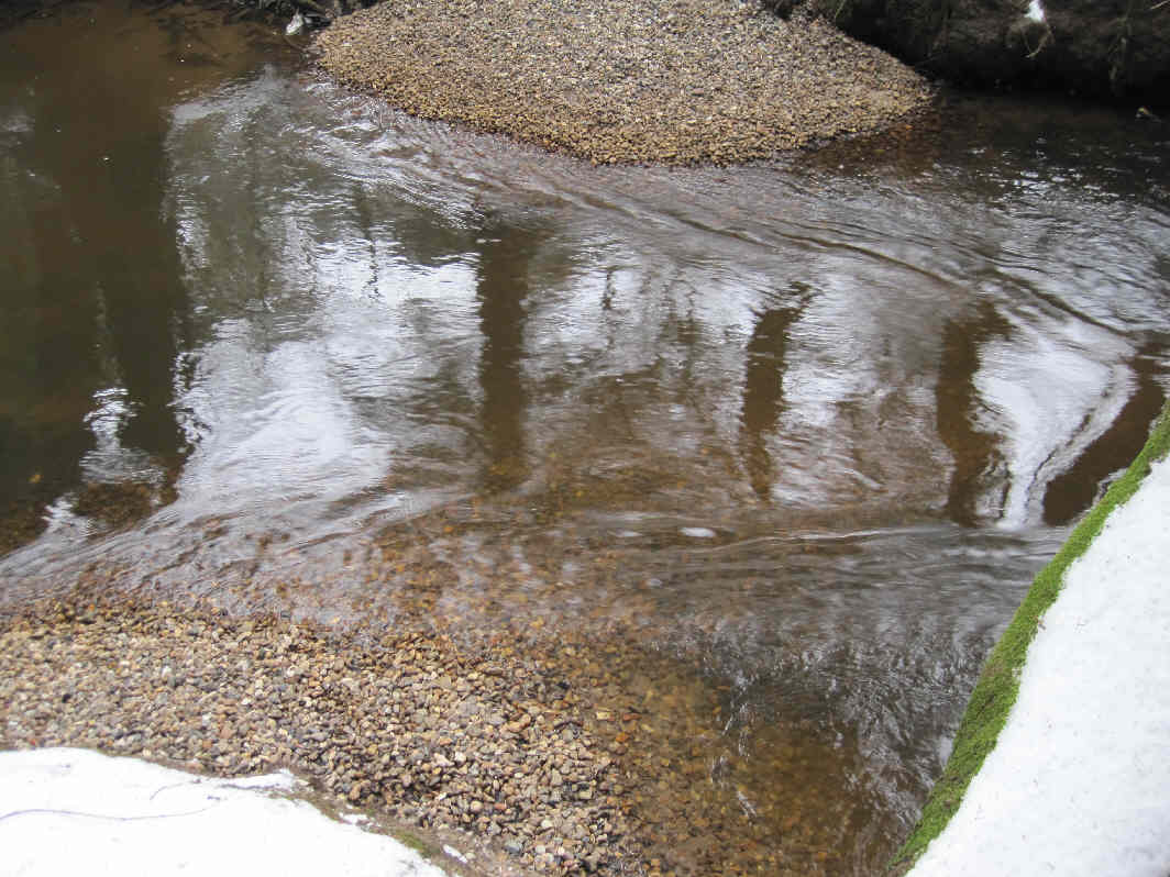 Besonders der Anstrom der Rauschen wird bevorzugt belaicht. Liegt der Kies großflächig, schlagen sich die Forellen ihre Kleinstruktur mit Kuhle und folgendem Kiesanstrom selbst.
