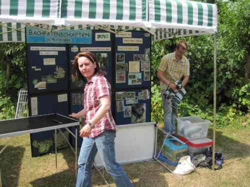Tatsächlich, die Veranstaltungsstände werden abgebaut – hier der zu Wandsbeks Bachpatenschaften.