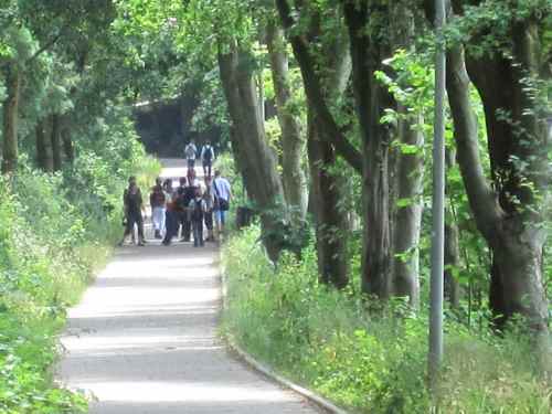 Auf dem Weg zur S-Bahn – der Nackte steht immer noch in praller Sonne. Ich freue mich auf den klimatisierten Metronom.