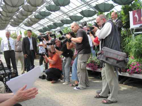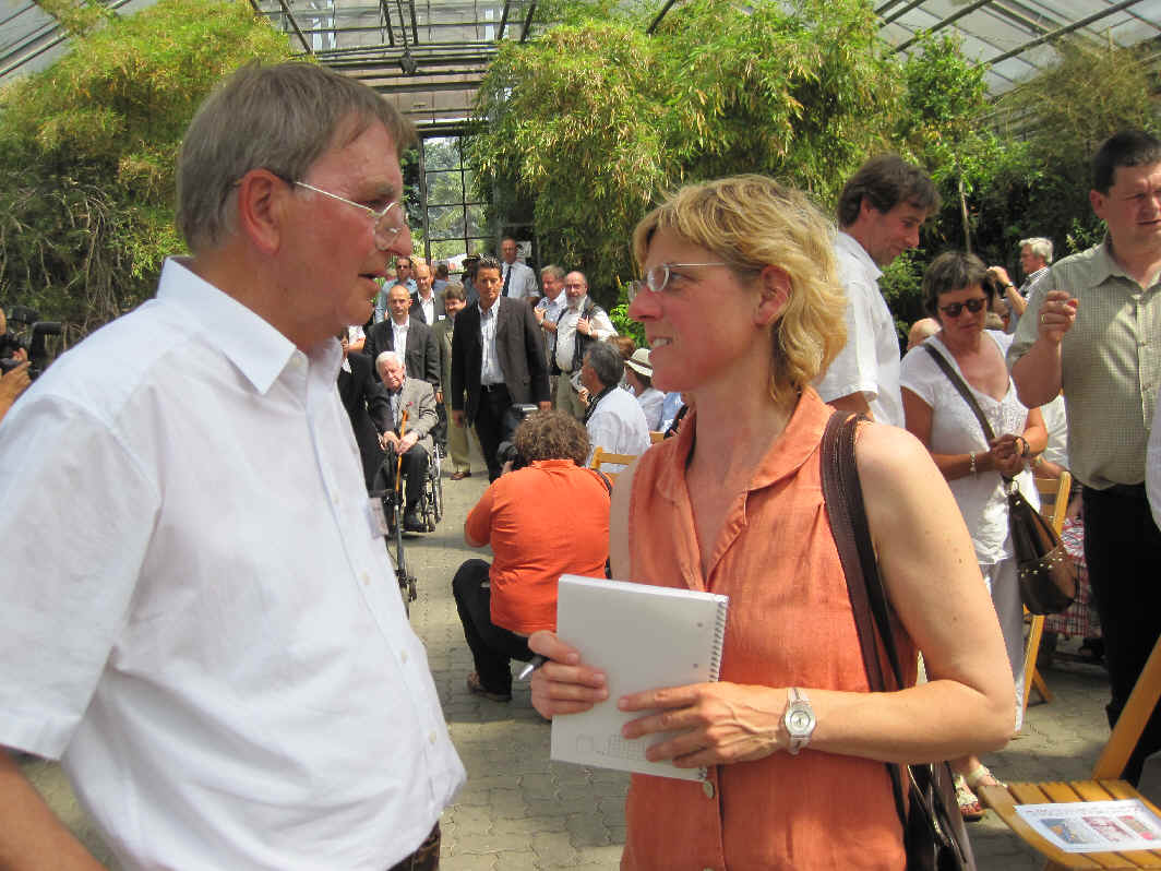 Loki Schmidt begrüßt die Gäste, Stiftungs-Geschäftsführer Dr. Johannes Martens freut sich, dass alles klappt.