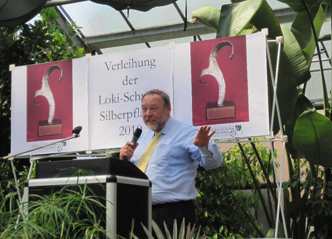 Die Schluss-Laudatio bestritt, launig und kurzweilig wie gewohnt, Dr. Hans-Helmut Poppendiek. Horst Bertram, Botanischer Verein zu Hamburg e.V., erhielt seine Silberpflanze.