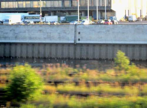 Immer und überall zu sehen: typisches „Bau“ufer – Steilwand verhindert Pflanzenwachstum im Land-Wasser-Übergang. Wer hier reinfällt, kommt nicht wieder raus! – Bitte die Ufer flach einbinden.