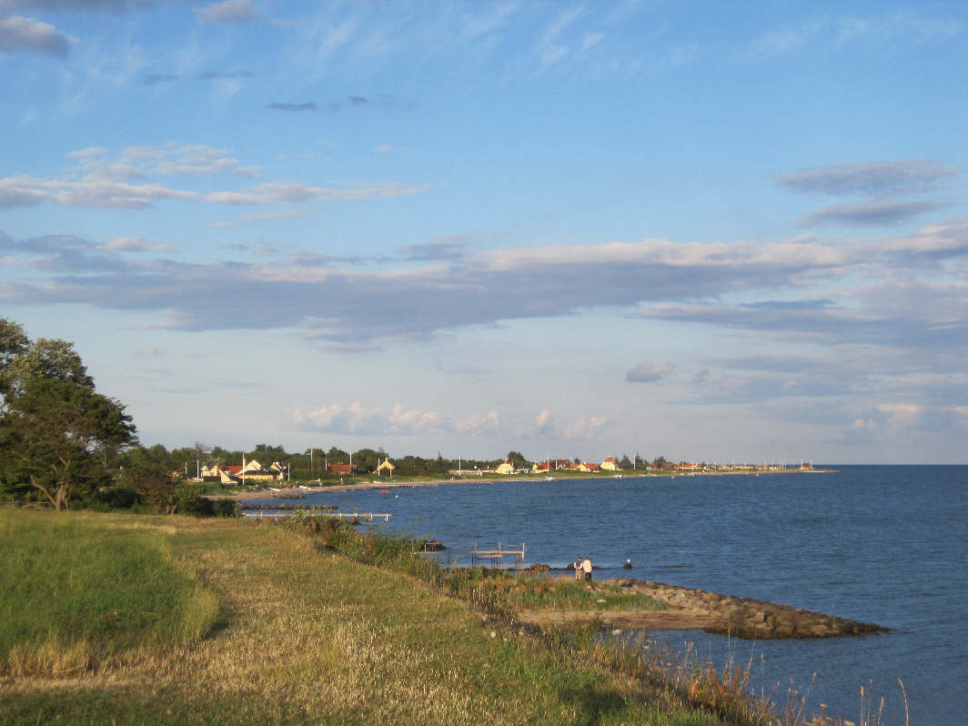 Bei diesem Blick aus unserem Sommerhaus ist zu ahnen, was ich mit "dem Wolkenloch" über Juelsminde meine. Sehr oft bei wechselnden Wetterlagen werden hier an der Küstenspitze die Wolken abgedrängt. Während hier die Sonne scheint, kann es in Horsens und Vejle schütten (umgekehrt haben wir es äußerst selten erlebt).