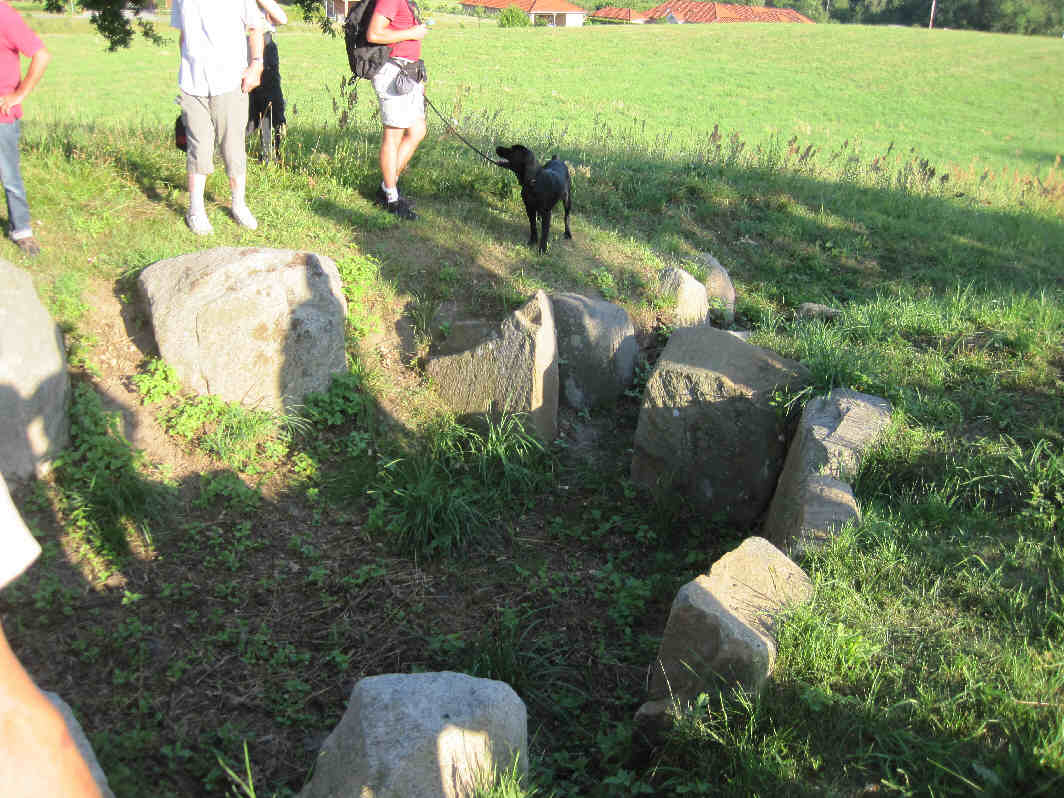 Ein Grabhügel mit offen liegender Kammer. Erstaunlich zu sehen, wie auch "Zwillingssteine" - zwei Teile eines gespaltenen Steins, verarbeitet sind.