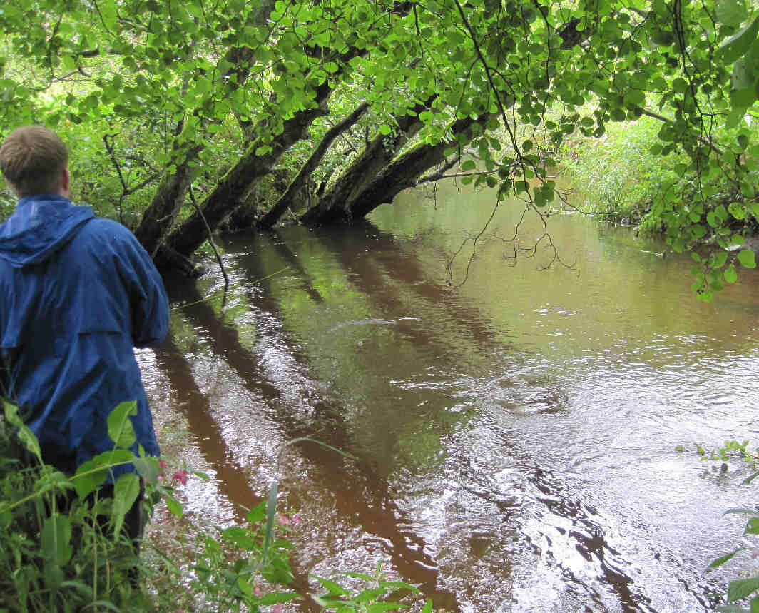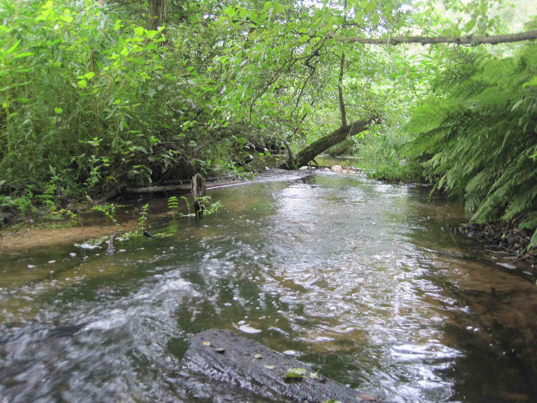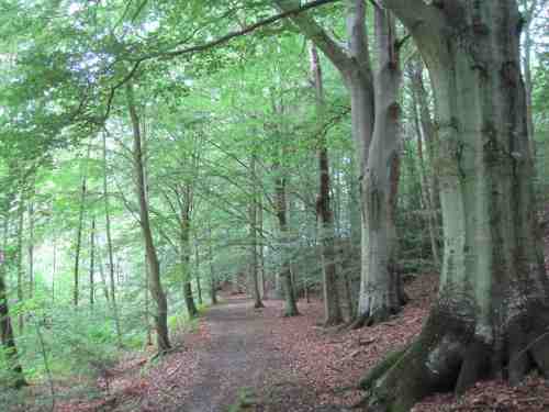 Beeindruckend im östlichen Jütland ist im wechselnden Gelände zwischen Bachtälern und Höhen der zugehörige Wechsel der Vegetation - hier Buchenwald neben Erlen- und Eschen-Auwald (Tønballegård bei Snaptun).