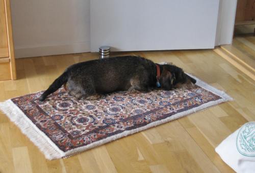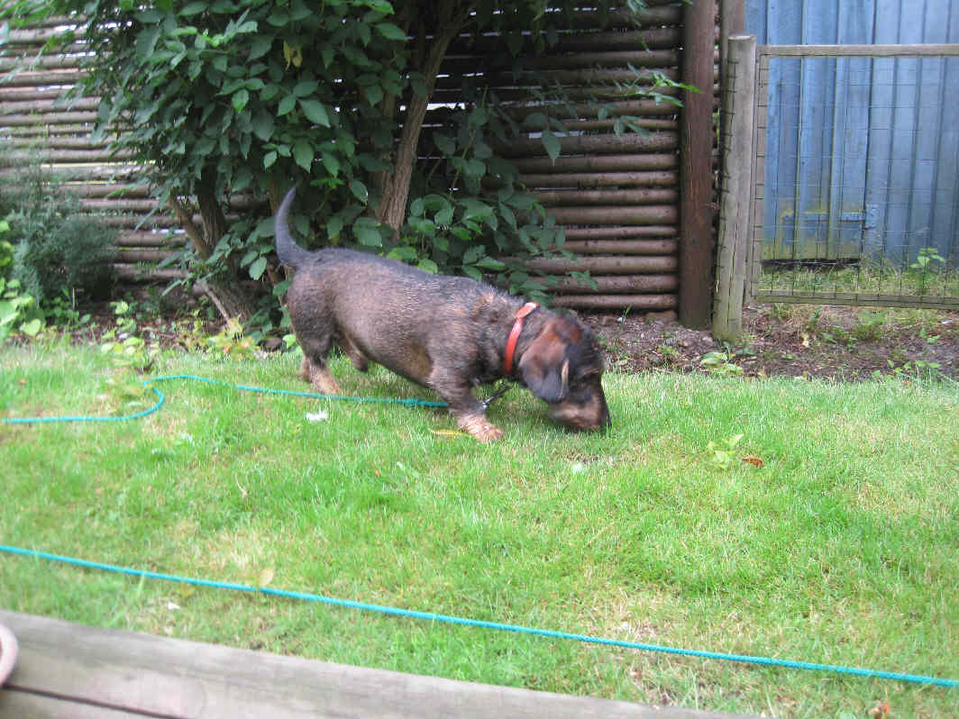 So eine Raupe interessiert Socke natürlich gar nicht - nur die des Weidenbohrers, nach Ziege stinkend, lockt einen Dackel.