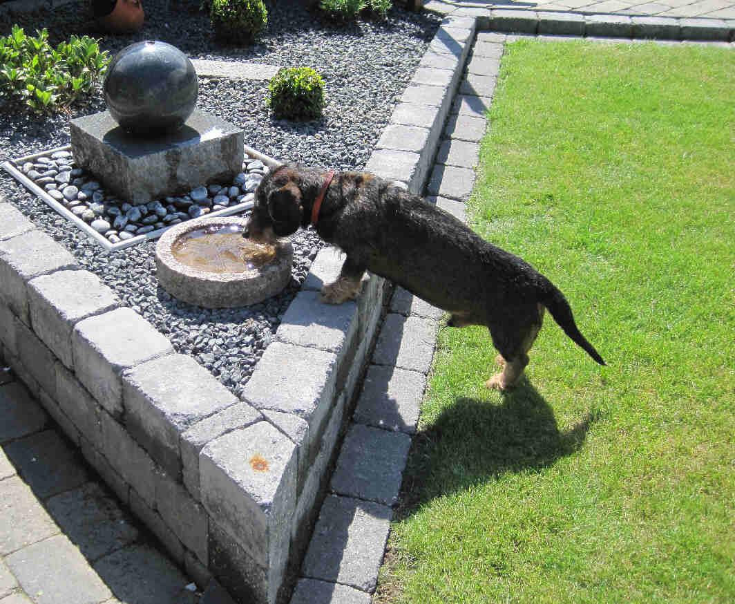 Besuch im sonnigen Århus - dankbare Nutzung des Stein-Wasser-Garten-Ensembles.