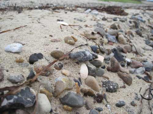 Schönes Modell, z.B. für Gewässerrestaurierer im Norddeutschen Tiefland, in Sachen "Sehen lernen". Während die flache Oberfläche schön mit weissem Sand belegt ist, zeigt das Profil, dass massenhaft von der Eiszeit antransportierte und vom Wasser sortierte Steine das Bodenvolumen bestimmen.