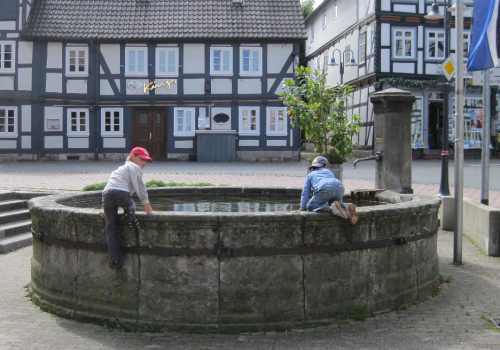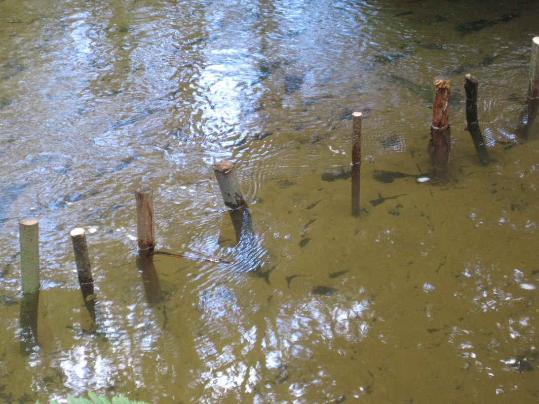 Die Stein-Variante des so wichtigen Blattrückhalts, verbesserbar durch Restaurieren, zeigt der Eintrag vom 3. Oktober 2009 über die Exkursion des Wassernetzes Niedersachsen-Bremen an der Este.
