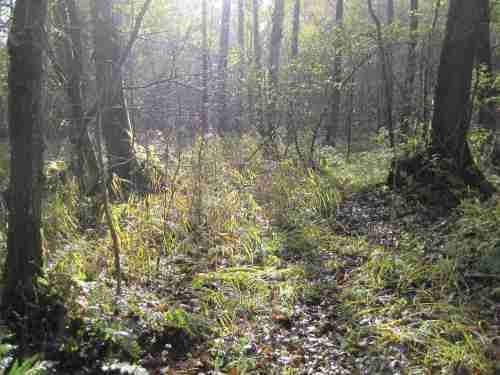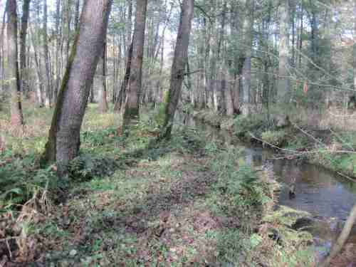 Heute frisch Wildsau-gepflügt - hier im Erlenbruchwald, im überbreiten Sandkanal der Este, haben wir mit Hölzchen und Stöckchen Strömungsvielfalt geschaffen.