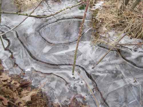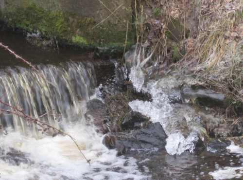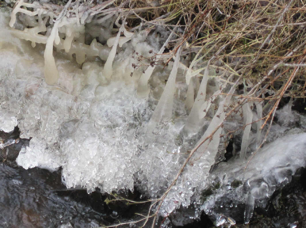 Es ist wieder kalt geworden. Eiskunst begleitet unseren Spaziergang ins Naturschutzgebiet Obere Wümmeniederung.