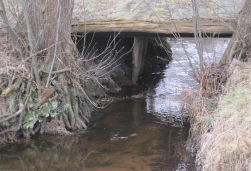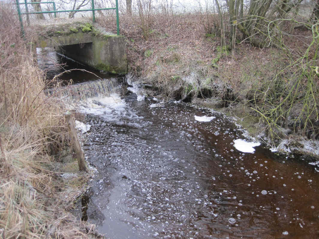 Zeugen der Vergangenheit: Eine Ahnung der Urbreite dieses Bachs ergibt sich hier an der Überfahrt. Die Breite beträgt die Hälfte im Vergleich zur heutigen kaputt unterhaltenen Strecke - also reichlich Platz, um durch Restaurieren wieder Struktur dort zu schaffen!