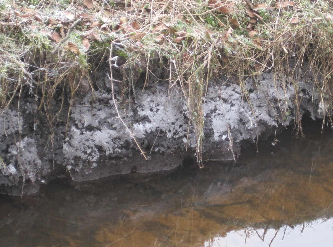 Absturz-Detail. Während gemäß fachlicher und rechtlicher Zielsetzung derlei Wanderhindernisse allerorten entfernt werden (müssen), ist die Botschaft - nochmal wiederholt: hier im Naturschutzgebiet Obere Wümme - offenbar nicht angekommen.