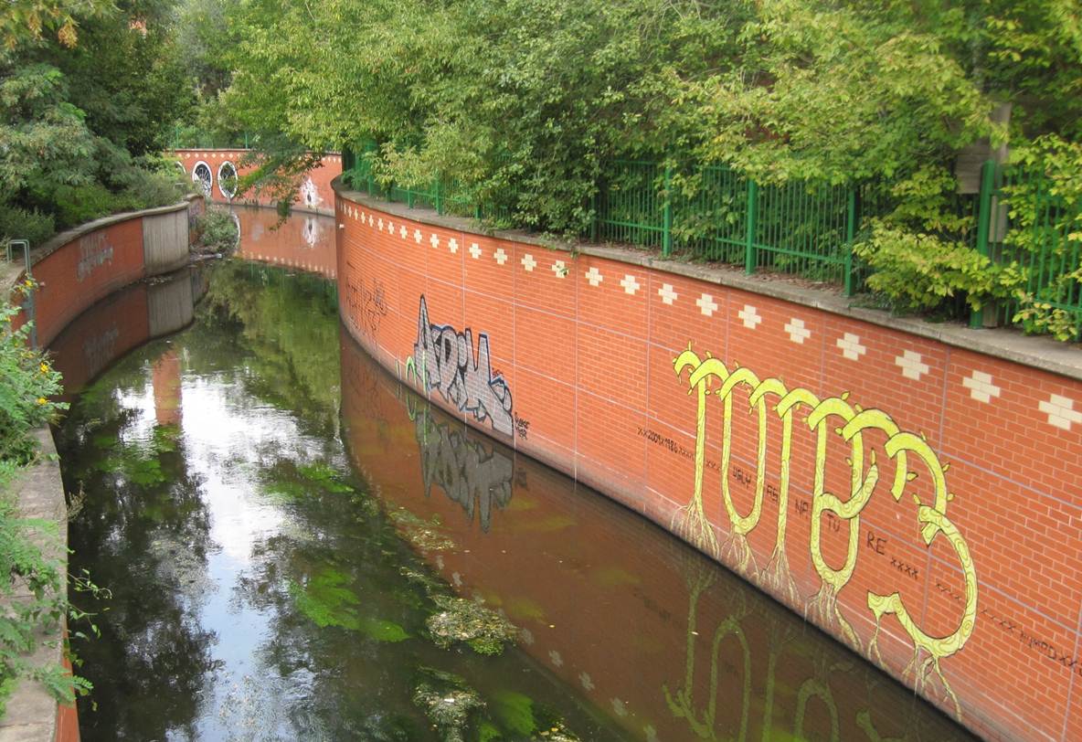 Die Panke in Berlin - mit allen Charakteristiken eines Stadtbachs. - Aaaaber: ein solches Naturpotential hätte ich hier nicht erwartet. Mit geringem Aufwand ist bereits erhebliche Verbesserung möglich.