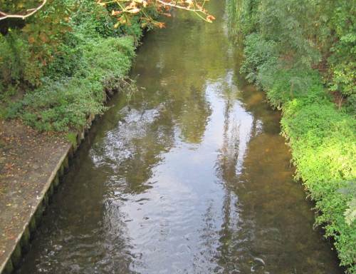Detailfoto des Zulaufbereichs als Abschluss: der zuständigen Verwaltung, dem Planer und den Ausführern stellt sich eine herausfordernde Aufgabe, wollen sie die gesetzlich geforderte Verbesserung der Gewässerökologie und die Aufwertung des Stadtbildes / Erholungsraums vereinen. Beide Themenbereiche verlangen dasselbe - aus Fehlern anderswo ist zu lernen, wie sie vermieden werden können.