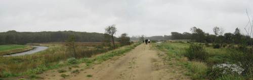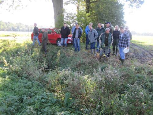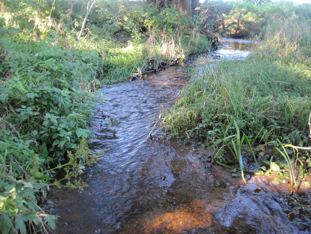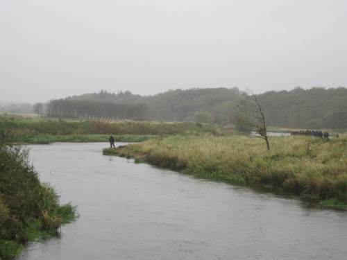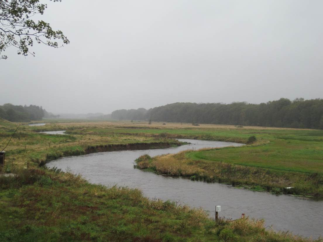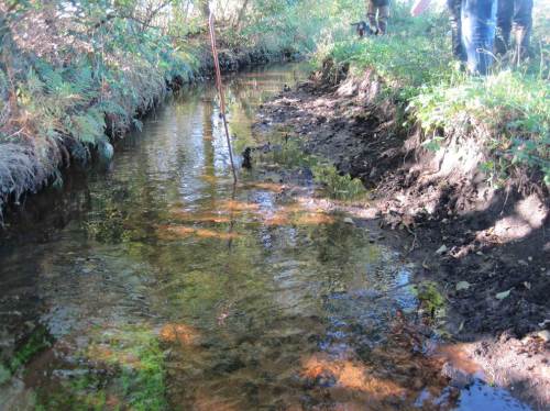 Ein überschaubarer Heidebach, Laich- und Aufwuchsstrecke in der Salmonidenregion, eignet sich hervorragend für Exkursionen - und schon sieht man wieder die von links extrem herandrängende, den Bach gefährdende Landwirtschaft..