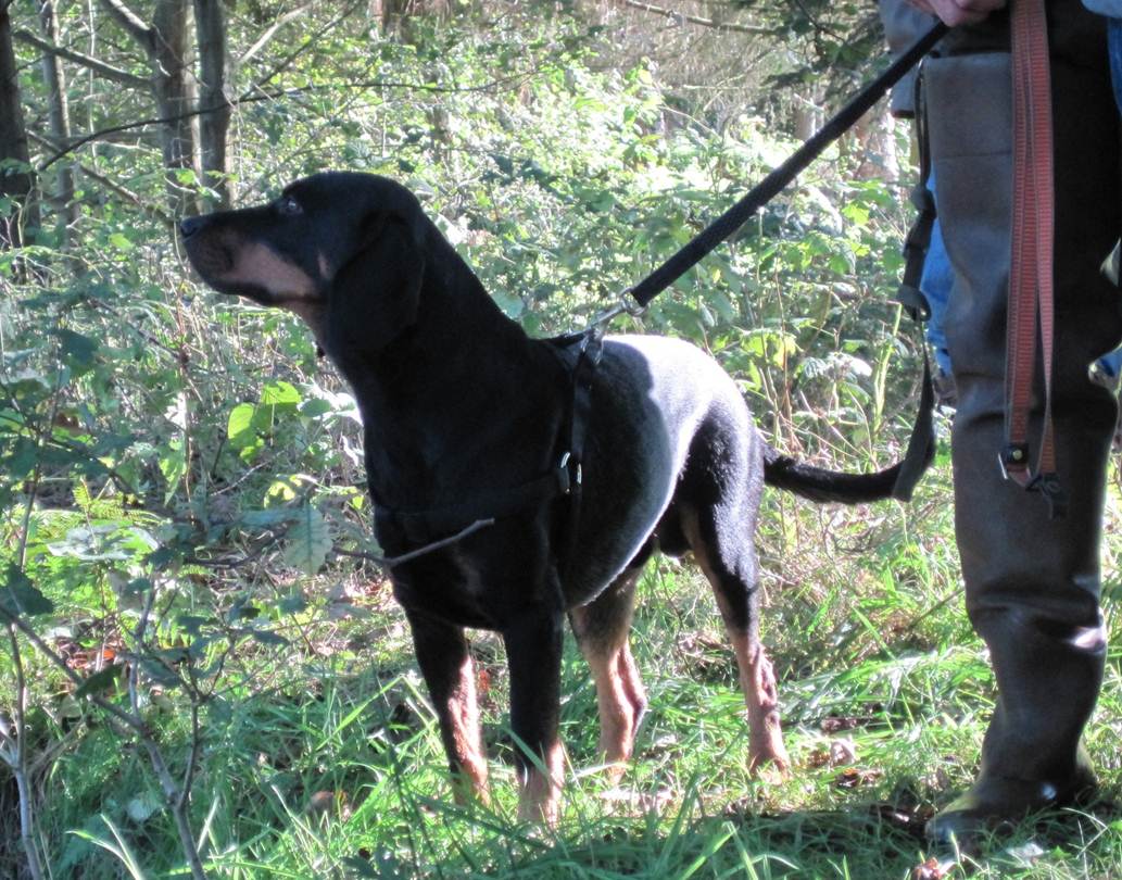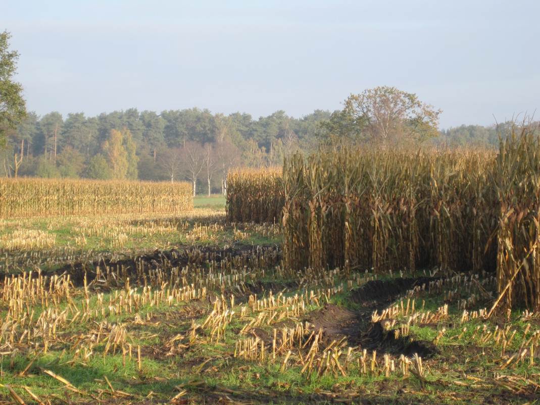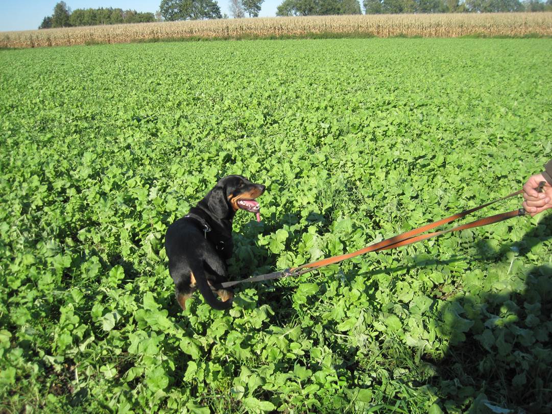 Und die Brandl-Bracke war begeistert! Spuren über Spuren - vor allem Wildschweinwechsel, erkennbar an erheblicher Erosion des nicht wurzelgeschützten Bachufers neben landwirtschaftlicher Intensivnutzung, hatten es ihr angetan. - "Darf ich da jetzt in den Mais rein???" - "Nein!"