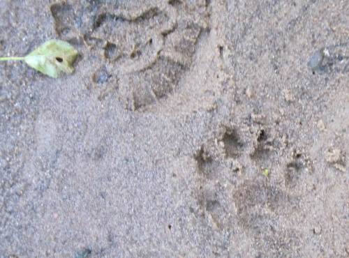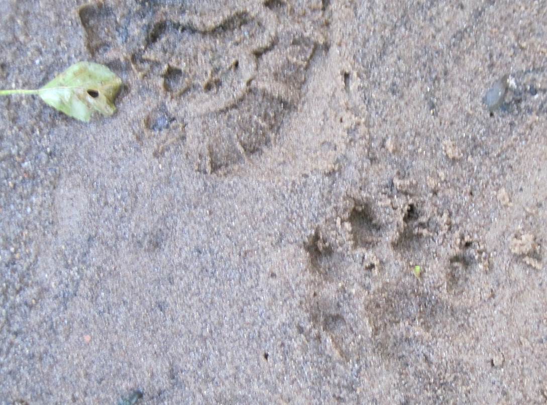 Na, und da ist er neben der Stiefelspur: ein eindeutiger Pfotenabdruck des Fischotters.