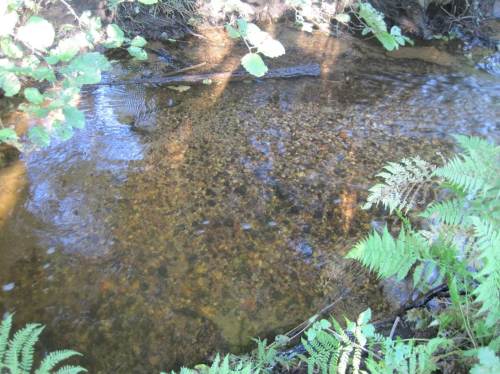 Eine Kiesbank oberhalb einer Erlenwurzel zeigte, dass der Gewässergrund hier von Bachforellen als Laichplatz genutzt worden war.