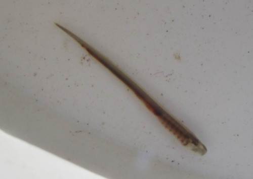 In sandigem Gewässergrund fanden wir auch eine Neunaugenlarve.