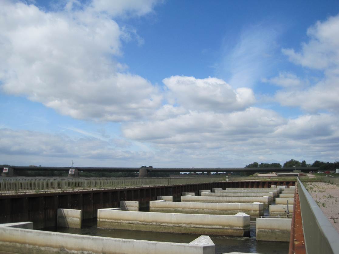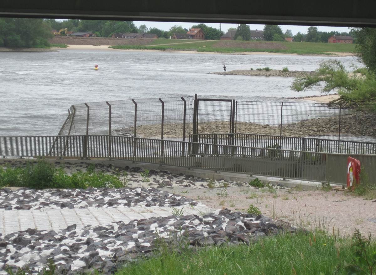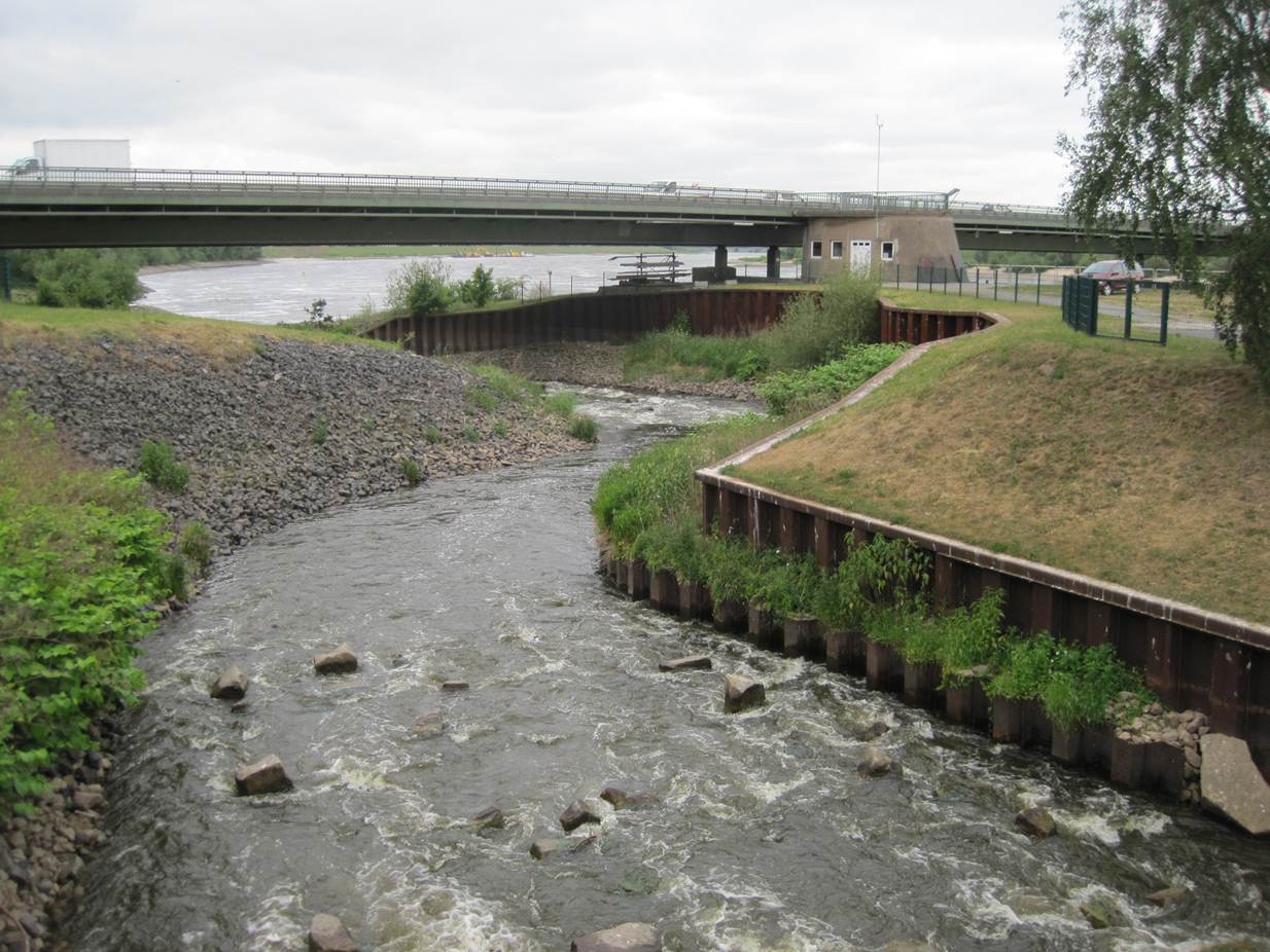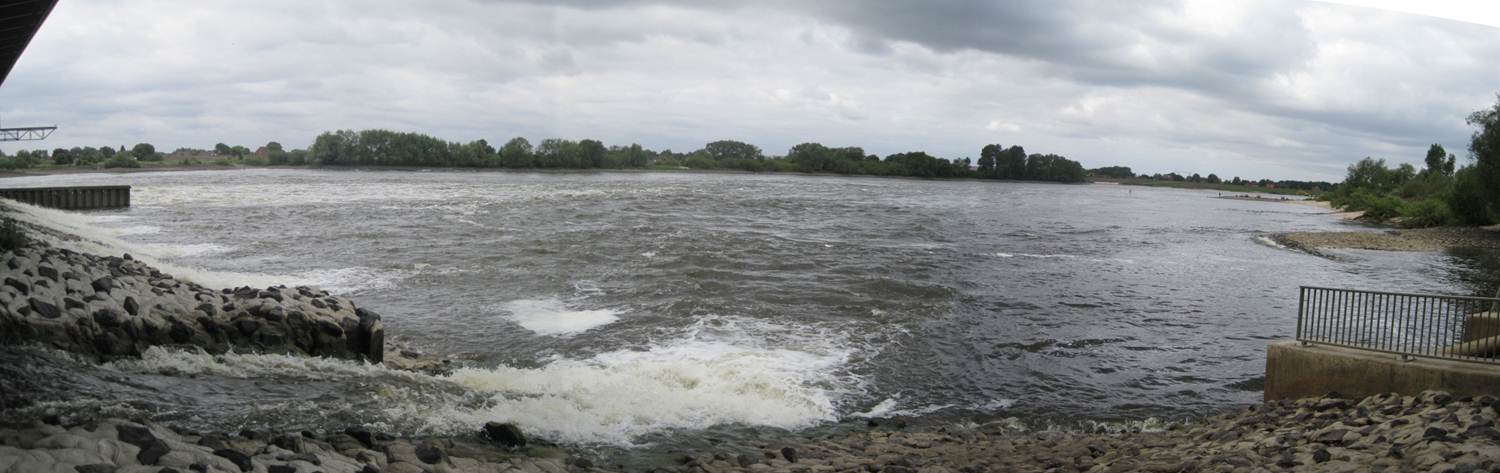 Wer Zeit hatte und die Örtlichkeit kennt, besuchte schnell noch den in den 1990ern erstellten Fischpass am Südufer der Elbe. Wie das Foto zeigt, ähnelt er mit Mäander einem rauschenden norwegischen Lachsfluss.