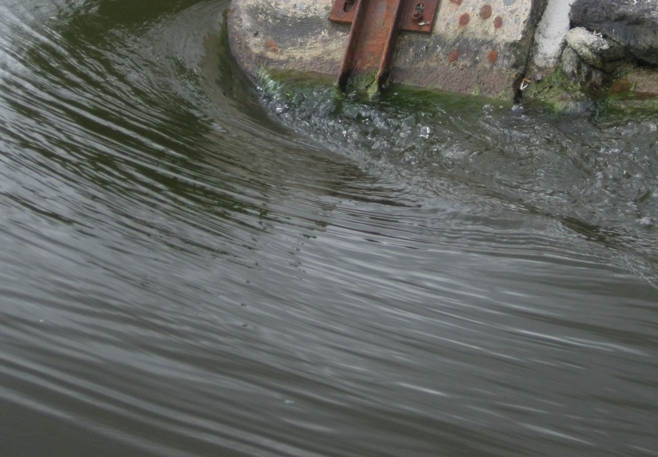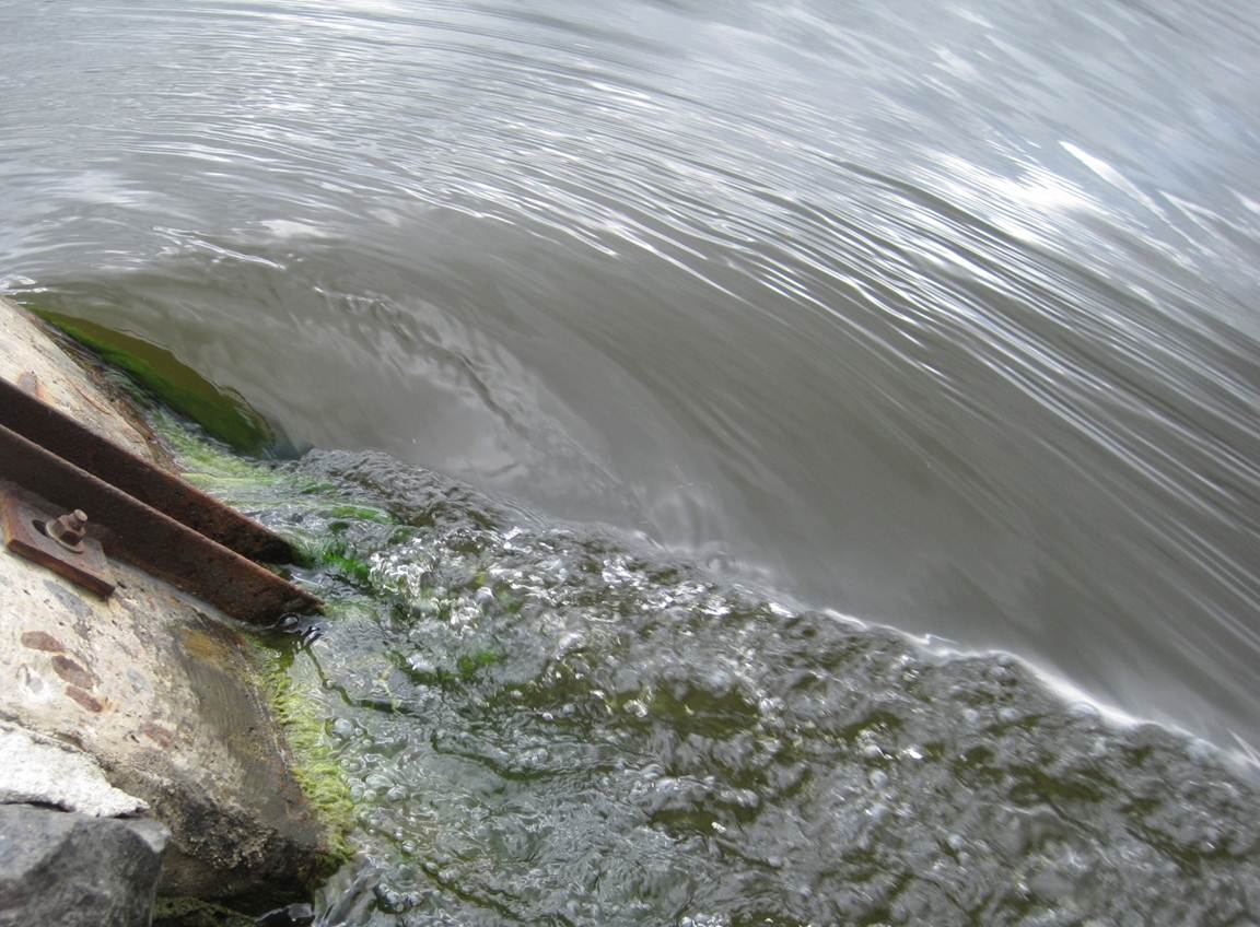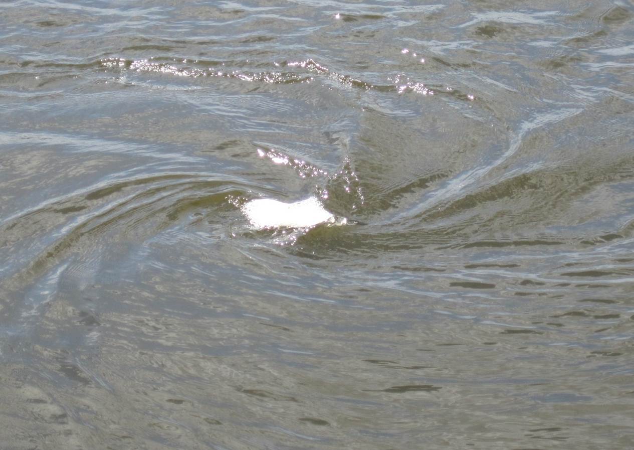 Einlaufstrudel des in den Fischpass geführten Zusatzwassers. Muss mal fragen, wie das Teil vor Verschlucken von Lebendigem gesichert ist (und vor Verstopfung mit anderem Treibsel).