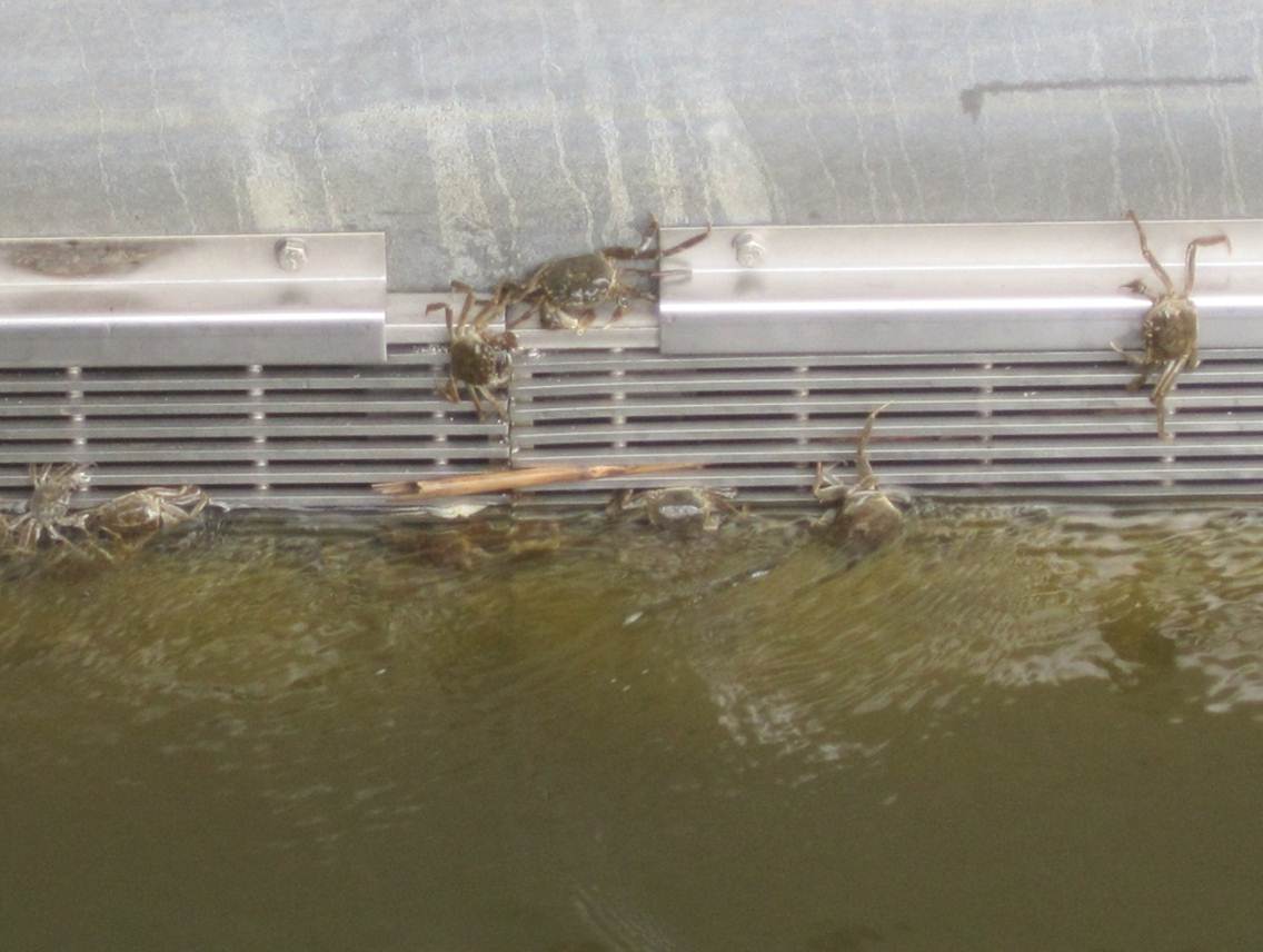 Da ist es ja, das Futter. In rauen Massen – Wollhandkrabben. Die schmecken übrigens auch Menschen ausgezeichnet. Die kleinen sollen geröstet ein sehr appetitlicher Snack sein. Erwachsene bieten eine richtige Krebs-Mahlzeit.