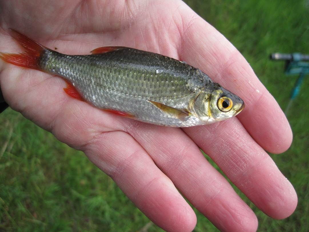 Stippfischen war angesagt. So waren also verschiedene karpfenartige Fische zu erwarten, z.B. die fast gleich klingenden Arten Rotauge und Rotfeder. Wie hält man die denn auseinander?