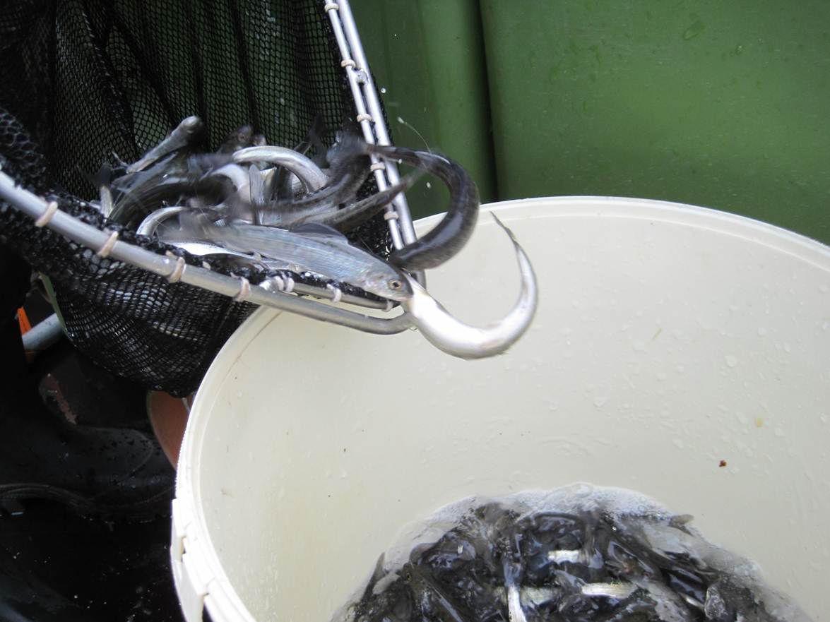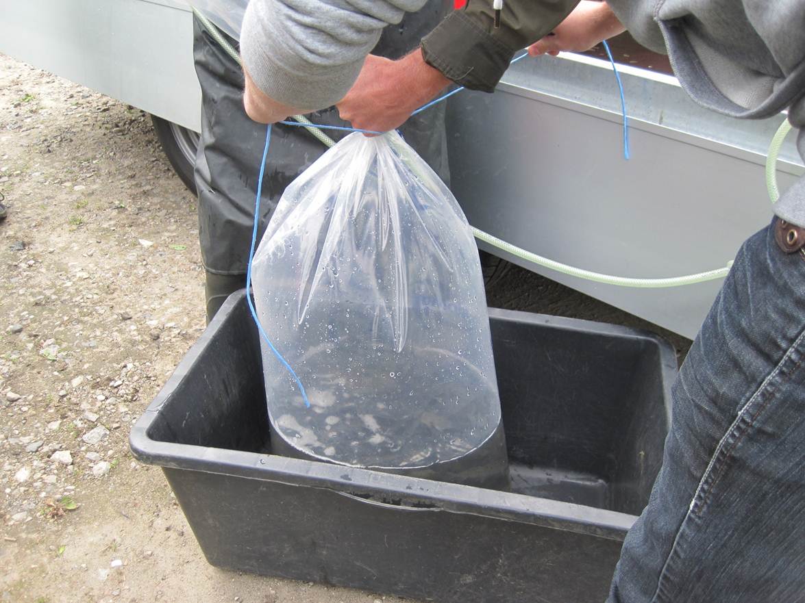 Nun wird es aber Zeit, dass die Fische aus den Transportbeuteln in ihren künftigen Lebensraum entlassen werden.