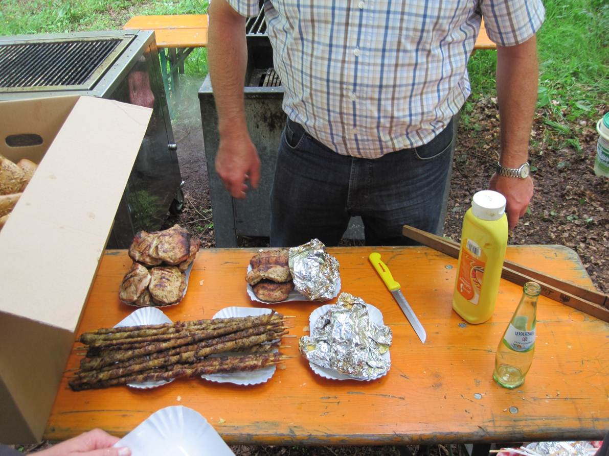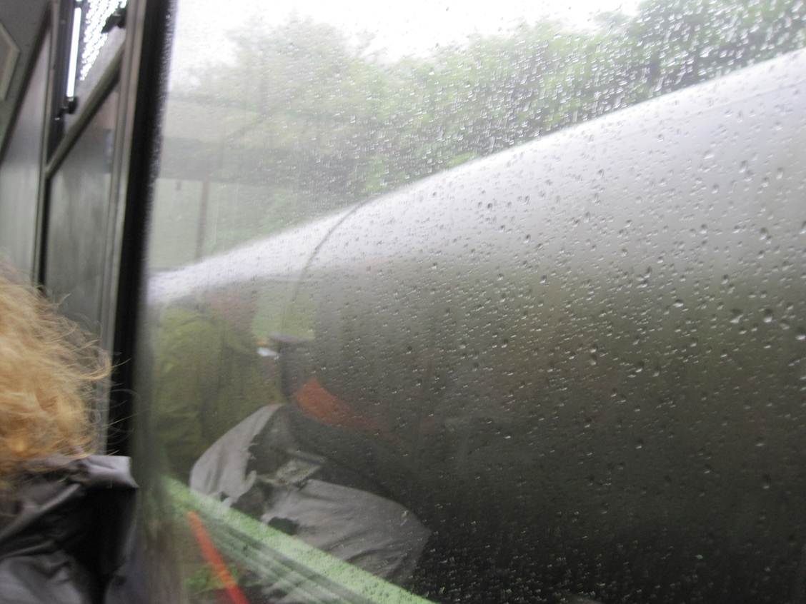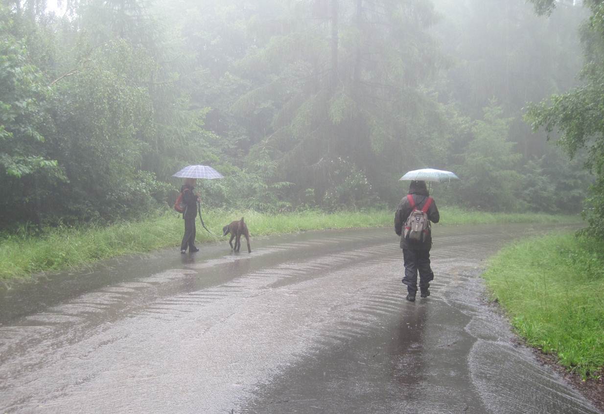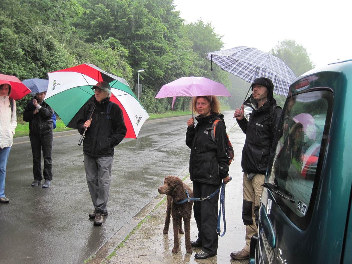 Gut beschirmt, mit Regenjacken und -hosen ausgestattet kann uns eigentlich auch bei unserem anschliessenden Freiluftteil nicht viel passieren.