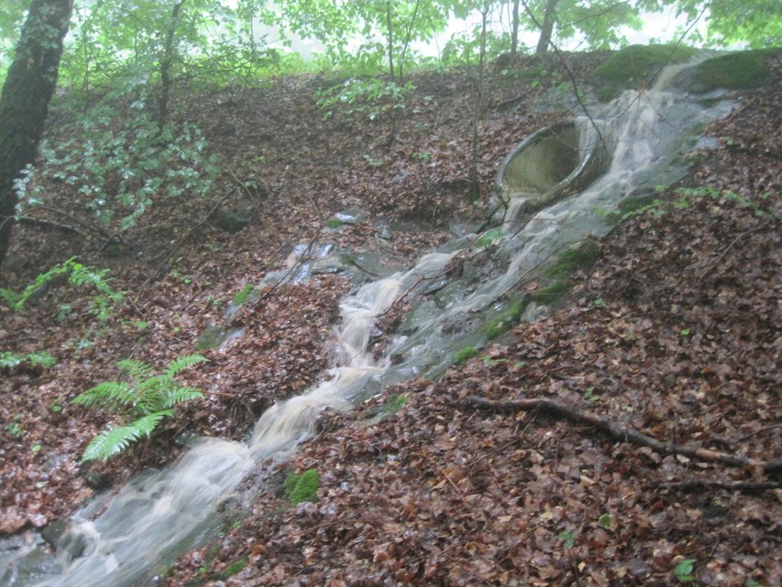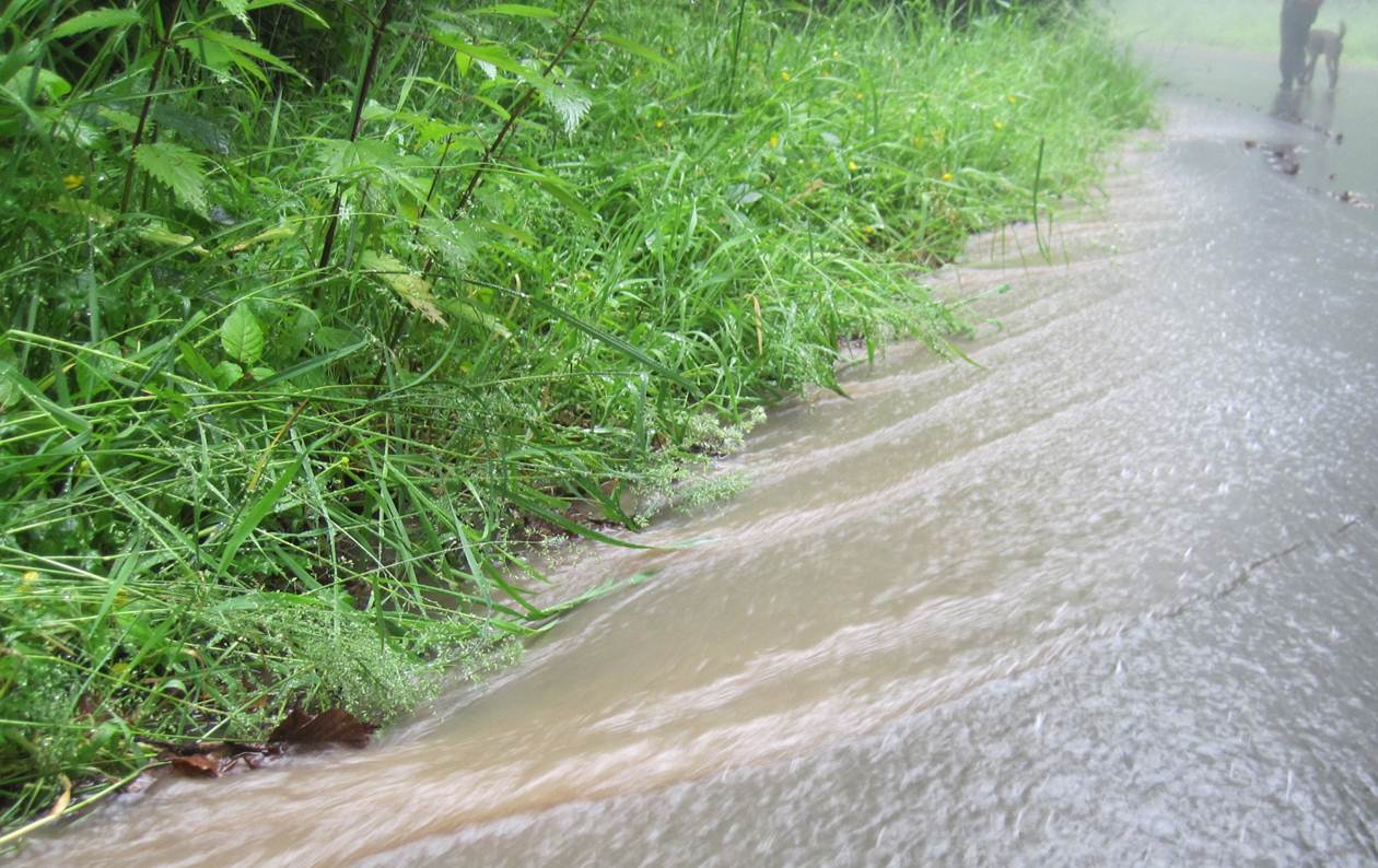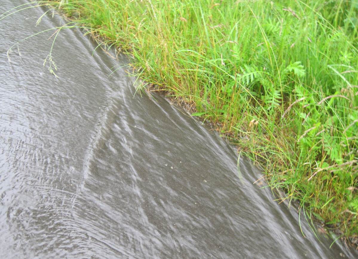 Die Natur macht, was sie will – unplanmäßig verlässt die Flut die Straße, rein in die Schlucht.