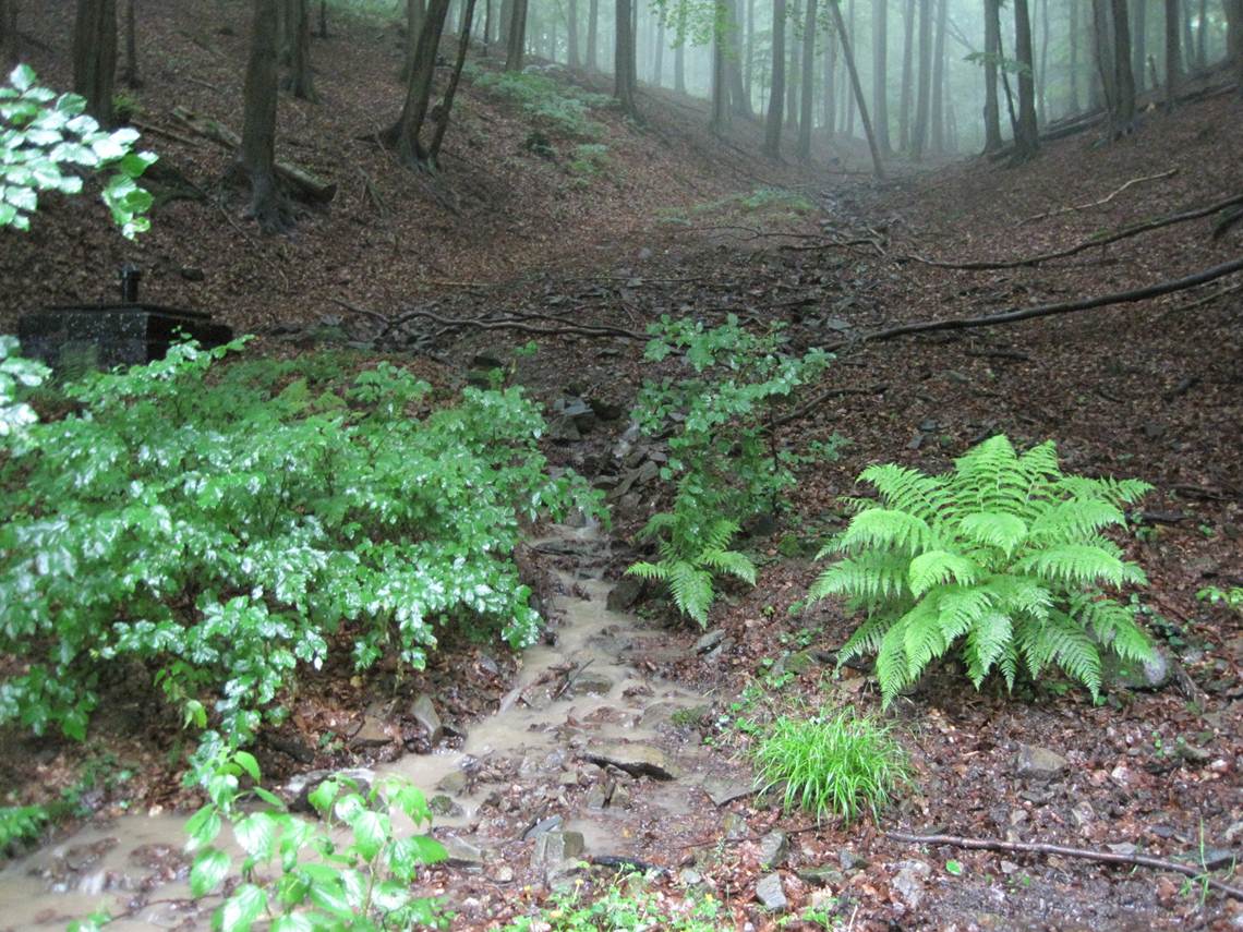 Weiter rauscht das Wasser im V-Tal durch den Buchenwald.