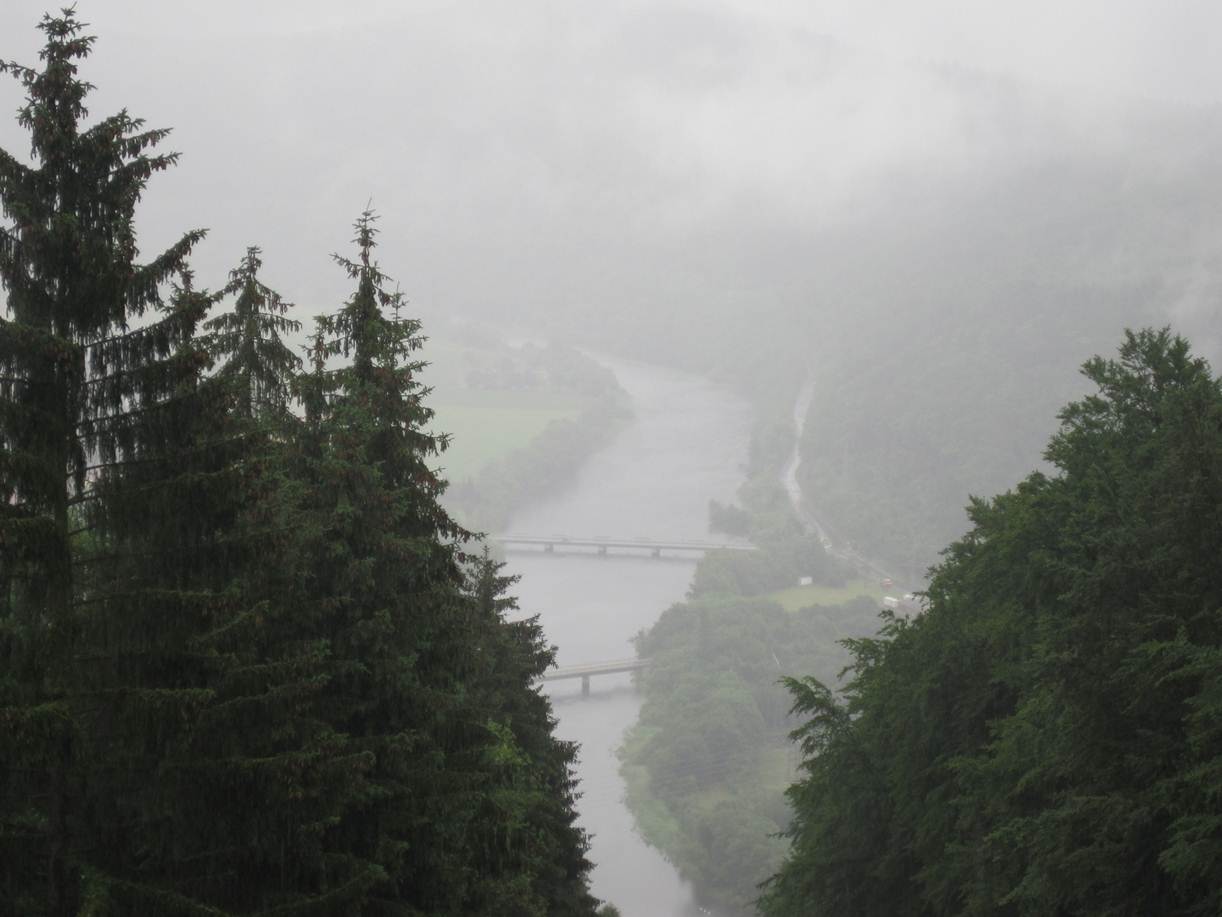 Realität am Fuß des Peterskopf – wir haben einen Regentag erwischt, nix zu sehen.